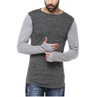 Urbano Fashion Men's Charcoal Grey Thumbhole Cotton T-Shirt - T-Shirt100211