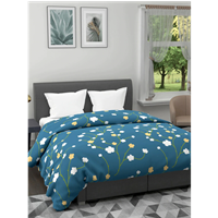 Clasiko Teal & White Floral Ac Room 120 Gsm Double Bed Comforter - 13382092