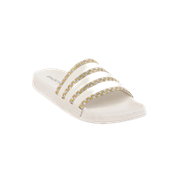 DressBerry Women White & Gold-Toned Striped Open Toe Flats - 12829962