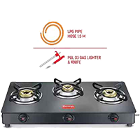 Pigeon Sleek 3 Burner Glass Manual Gas Stove (3 Burners)