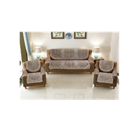 Elohim Cotton Geometric 5 Seater Sofa Cover Set With 6 Pieces Arms Cover (Brown) - Set Of 12 Piece - EL1311