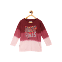 Boys Burgundy & Maroon Tie & Dye & Printed Round Neck T-Shirt - T32