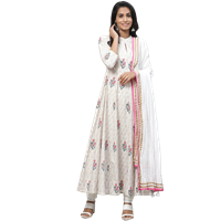 Women White & Golden Printed Kurta with Churidar & Dupatta - S0064
