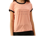 DressBerry Women Peach-Coloured Printed Round Neck T-shirt - TSW1052