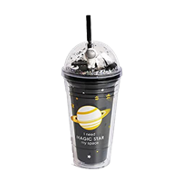 Plastic Unicorn Design With Sparkle And Glitter Light And Non Light Fancy Sipper With Straw 600Ml